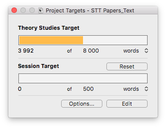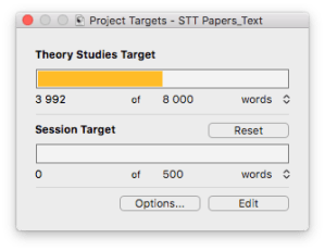 Scrivener also allows you to set project and session targets, so you can visually (hey, this one’s for you, designers!) track your progress. It’s a great feeling when you’ve reached your session target for the day, and often I find myself wanting to push further for that day, just to nudge closer to the final project target goal.